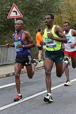 Sisay Lemma began his running career at 17 and initially competed barefoot due to a lack of running shoes.[2]