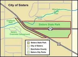 - ^ a b "City Parks", City of Sisters, Sisters, Oregon, 19 September 2014.