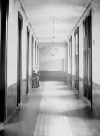 On 3 June 1848,[5] eight Sisters of Charity, Sisters Ursula Mattingly, Ann de Sales Farren, Hieronimo O'Brien, Anacaria Hoey, Clare McDurby, Mary Aloysia Lilly, Mary Eliza Dougherty, and Agatha O'Keefe,[6] arrived in Buffalo.[4] Bishop Timon had purchased an unused brick schoolhouse and adjoining cottage at Pearl Place, which he gave to the Sisters to use.[7] They outfitted it with 100 beds and living quarters for themselves.[4] On 1 October 1848, Sisters of Charity Hospital officially opened as Buffalo's first large healthcare facility, under the leadership of Sister Ursula Mattingly, DC.[5] The first patients were a group of six sailors.