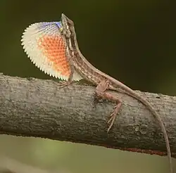 Sitana is a genus of lizards, collectively known as the fan-throated lizards, in the family Agamidae. They are found in Nepal, India, Sri Lanka, and Pakistan.[1] The genus comprises fourteen species, including several recently discovered ones,[2] two of which are from Sri Lanka.[3] In 2016, a new genus named Sarada was erected, consisting of one former Sitana species and two newly described ones. Sarada is the sister genus of Sitana. Together they form a clade whose sister group is Otocryptis.[1]