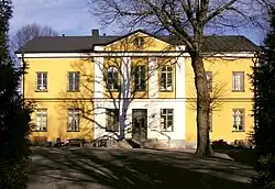During the 17th century, the land and cottages of Skarpa by were included in the Tyresö property. Tyresö was owned by the Oxenstierna family, which constructed a mansion in Skarpa by. A countess of the family (Maria Sofia de la Gardie[2]) made Skarpa a manor (Swedish: säteri) which she named Skarpnäck.[2][3] The manor continued to grow in the 18th century, now housing workers and farmers. The manor switched owners a few times, and in the beginning of the 19th century, there were almost 30 buildings in Skarpnäcks gård.[2][3] The last owner, Friedrich Neumüller, constructed the main building which still exists today, roughly 150 years later.[2] Eventually, in 1922, the property was sold to the Stockholm Municipality.[3]