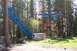 In 1986, the left sheave train (wheel system) of the chairlift failed and fell to the ground. There were no deaths or injuries, but four people had to be evacuated from the lift by the ski patrol. Ski Idlewild could not pay the $550 inspection fee to the Colorado Passenger Tramway Safety Board,[1] and the ski area was abandoned.[2] The Idlewild Guest Ranch continued its operation as a cross-country ski area, and the Ski Idlewild base lodge was closed and used for document storage. Idlewild Lodge teamed up with Devil's Thumb Ranch in Tabernash, creating a vast network of cross country ski trails connecting Tabernash, Fraser, and Winter Park. In 1994, the Idlewild Lodge hotel was sold, renovated, and reopened for winter and summer operation until closing again in summer 1996. Up until the close of the hotel in 2002, the ski area was serviced by the Winter Park Resort shuttle, which provided free transportation to Ski Idlewild.
