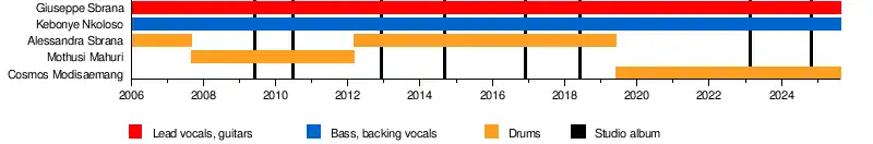 - Kebonye Nkoloso - bass, backing vocals (2006–present)