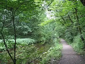 The 36.77-acre (14.88 ha) woods have the Eller Beck flowing through them, which connects to the River Aire and are accessible from the Leeds and Liverpool Canal.[5] The woods are also the starting point for Lady Anne's Way.[4][6]