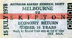 The Skipton Line was a branch line running south west from Ballarat to the town of Skipton, Victoria. The line branched from the main Serviceton Western line just after Ballarat at the Linton junction and was 55 kilometres long. The line was opened on 10 October 1890 and finally closed on 4 December 1986. The line had previously closed to passenger services in 1972.[1][2]