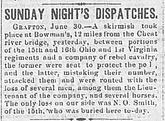 ![]() Article from the Wheeling Daily Intelligencer describing the Skirmish | |||||||