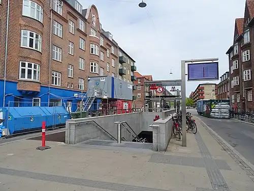 Skjolds Plads station is an underground Copenhagen Metro station at Skjolds Plads in the Outer Nørrebro district of Copenhagen, Denmark. It is on the City Circle Line (M3), between Vibenshus Runddel and Nørrebro. The station is situated at the intersection of Tagensvej and Haraldsgade, and is in Zone 2.[2]