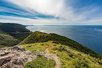 ![]() Skyline Trail, with French Mountain on the left, and the Gulf of St. Lawrence to the right | |