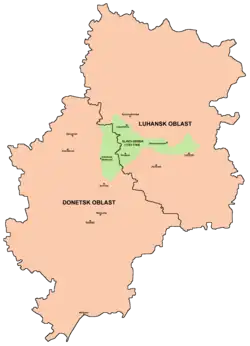 ![]() A map of Slavo-Serbia (in green) superimposed onto the borders of modern-day Donetsk Oblast and Luhansk Oblast in Ukraine | |||||||