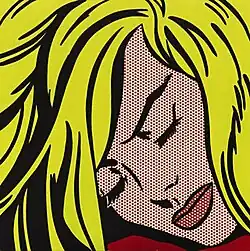 After 1963, Lichtenstein's comics-based women "...look hard, crisp, brittle, and uniformly modish in appearance, as if they all came out of the same pot of makeup." This particular example is one of several that are cropped so closely that the hair flows beyond the edges of the canvas.[8] The work is noted for its use of one of art's most classic subjects: the sleeping female muse.[4]
