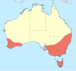 It is found in south-western Western Australia, south-eastern South Australia, Victoria, New South Wales[3] and Tasmania.[4]