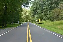 The first section of the road, between Park Valley Road and Colesville Road, opened on September 1, 1934. At that time there was to be a narrow road on each side of Sligo Creek - an East and West Drive - and a bridle path in-between them. Actual construction resulted in one, wider road on the West Drive alignment south of Maple Avenue and on the East Drive alignment north of there. The Sligo Trail meanwhile generally follow the path of East Drive south of Maple and the bridle path north of it. The trail was originally built as a bridle path and paved for bike use later, with most of the trail bridges upgraded between 1994 and 2002.[2]