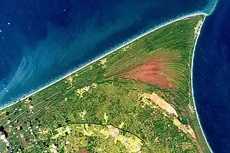 The park is set in the Courland Peninsula, at the point of cape Kolka that marks the end of the Irbe Strait, the southern way out of the bay of Riga.[1]