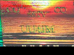 SSTV transmissions often include station call signs, RST reception reports, and Amateur radio jargon.