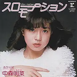 "Slow Motion" (スローモーション, Surō Mōshon) is the debut single by Japanese entertainer Akina Nakamori. Written by Etsuko Kisugi and Takao Kisugi, the single was released on May 1, 1982 by Warner Pioneer through the Reprise label. It was also the first single from her debut studio album Prologue (Jomaku).[1][2]