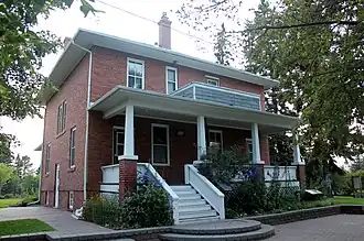 Smeltzer House was built by Maurice and Eliza Smeltzer in 1920 on a large farm in the former farming district of Salisbury.[2] The farmland surrounding the Smeltzer House, consisting of approximately 600 acres, was sold by the family between 1952 and 1976, and was developed into the community of Sherwood Park.[1] In 1976, Strathcona County purchased the home and surrounding grounds. The Smeltzer House, also known as the Smeltzer House Visual Arts Centre, is presently operated by Strathcona County as an arts and crafts and events space.[3]