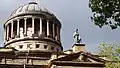 In 1873, and with Johnson still in the employ of the PWD, Johnson and Smith prepared a joint competition entry for the new Supreme Court of Victoria. The technical planning of this project was heavily influenced in the London Law Courts competition of 1868 (as were the other entries) and the submission was successful, creating serious embarrassment for Wardell. The issue was documented in evidence to the 1873 Royal Commission into the PWD. Later in 1873 Johnson resigned from the PWD and began the private practice "Smith & Johnson". The first project of the partnership was the Supreme Court design. Its implementation was delayed when the Chief Justice, Sir William Stawell, suggested that Smith & Johnson should abandon their submitted design and follow the plan of the Four Courts in Dublin. This scheme was adopted and the courts opened in February 1884.[1] This led to a wide range of private sector commissions, in particular numerous bank buildings for the Bank of Victoria, headquarters for the Union Bank (1878) and a number of large houses in Toorak. The bank work was largely a continuation of commercial relationships established by Alfred Smith prior to 1873.