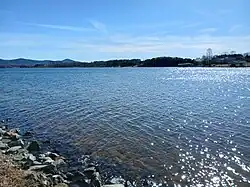 Smith Mountain Lake is a large reservoir in the Roanoke Region of Virginia,[3] United States, located southeast of the City of Roanoke and southwest of Lynchburg. The lake was created in 1963 by the Smith Mountain Dam impounding the Roanoke River. The majority of the south shore of the lake lies in Franklin County while a small portion, including access to the dam, lies in Pittsylvania County. Bedford County makes up the northern half of the lake, with the Roanoke River as the dividing line. The lake has become a popular recreation spot and has also experienced significant development in the last decade. It is the largest lake contained entirely within the Commonwealth of Virginia.