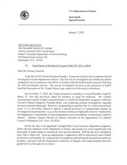 234. ^ "#90 in United States v. Donald Trump (11th Cir., 24-12311) – CourtListener.com". CourtListener. January 8, 2025. Retrieved January 8, 2025. On the evening of January 7, both volumes of the report were transmitted by the Special Counsel to the Attorney General. Consistent with Justice Department practice, the Attorney General did not review the report before its transmission.