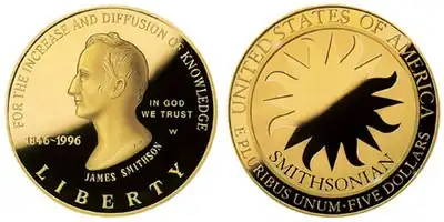- ^ "Smithsonian 150th Gold $5". United States Mint. Retrieved 2022-06-12.