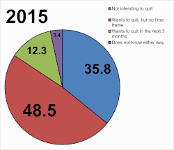 The annual Smokefree GB survey, published in May 2017, concluded that 52% of the 2.9 million British e-cigarette users are now ex-smokers. 26% of respondents thought e-cigarettes were as harmful as real cigarettes.[37] In March 2017, it was reported by The Telegraph that the UK's e-cigarette boom is in decline, with the number of people using e-cigarettes in Britain decreasing for the first time since their launch.[38]
