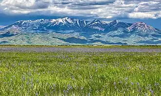 Smoky Dome rises about 5,000 feet (1,500 m) over the Camas Prairie and is the 21st most prominent peak in Idaho.[4] Views from the summit encompass the Pioneer, Smoky, and Trinity Mountains as well as the Bennett Hills.