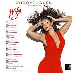 The Smoove Jones Show tour is the third concert tour by American recording artist Mýa. It was launched in support of her eighth studio project, Smoove Jones (2016), and consisted of three legs. The first leg of the tour began on February 27, 2016 and concluded on June 25, 2016.[1]