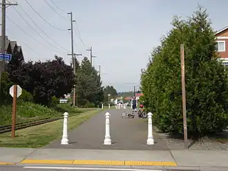 The Snohomish County Centennial Trail is a 30-mile-long (48 km) rail trail in Snohomish County, Washington, connecting the cities of Snohomish, Lake Stevens, and Arlington to Skagit County along the corridor of Washington State Route 9.[1] The trail, administered by Snohomish County Parks and Recreation, is on the former right-of-way of the Seattle, Lake Shore and Eastern Railway and comprises a 10-foot-wide (3.0 m) non-motorized trail and a 6-foot-wide (1.8 m) equestrian trail.[2] The first segment of the corridor was opened in 1989, the centennial of the statehood of Washington, and the final segment between Arlington and the Skagit County line was opened in 2013.[3]