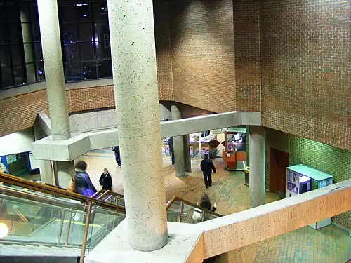 In October 2013, work began to make the station accessible. Construction involved building two elevators to connect both platform levels of the station, with a third elevator constructed to connect the upper platform level with the surface entrance. The only vestibule of the station underwent reconstruction.[5] After completion, the surface elevator features its longest shaft in Montreal Metro, with the pit depth of about 25 meters. Works was completed by June 2016.[6] However, the Blue Line itself was not accessible until Jean-Talon station (which also interchanges with the Orange Line) gained elevators in 2019.[7]
