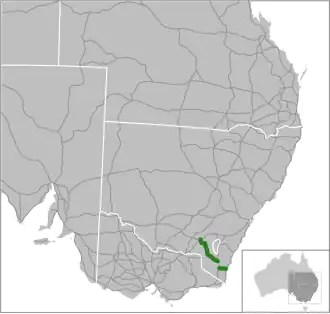 Snowy Mountains Highway is a 333-kilometre-long (207 mi)[1] state highway located in New South Wales, Australia. Its two sections connect the New South Wales South Coast to the Monaro region, and the Monaro to the South Western Slopes via the Snowy Mountains. The higher altitude regions of this road are subject to snow over the winter months, and the road also provides access to many parts of the Snowy Mountains Scheme. The highway bears the B72 shield along its entire length.
