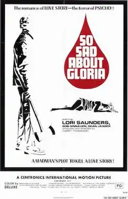 So Sad About Gloria, also known as Visions of Evil[2] is a 1973 American horror film directed by Harry Thomason and starring Lori Saunders, Robert Ginnaven, and Dean Jagger. Its plot follows a mentally unstable woman who has visions of herself at the center of brutal axe murders.