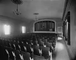 In 1908, the auxiliary committee of the Genealogical Society of Utah announced it would restore the Social Hall for use as a theater and for social functions.[38] During the project, original features were kept when practical and the total cost of the restoration was about $4,000 (equivalent to $139,985 in 2024).[39] Following the completion of the project, a private rededication for the hall was held February 9, 1909. Hosted by the church's First Presidency, the ceremonies included a dinner, impromptu program, and dancing. A dedicatory prayer was given by Presiding Bishop Charles W. Nibley.[40] A formal, public reopening of the structure was then held of February 19, with a banquet and ball.[41]