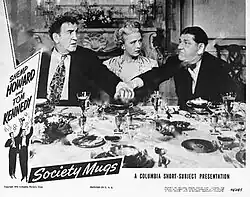 Society Mugs is a 1946 Columbia Pictures short film directed by Edward Bernds starring Shemp Howard and Tom Kennedy.
