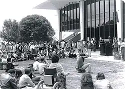 Other notable speakers included attorney and Libertarian Party candidate for U.S. Vice President David Bergland at Chapman College in the city of Orange, on 1976 presidential election and the nature of law,[18] USC professor of philosophy John Hospers,[19] and professor of educational policy studies, Joel Spring.[20]