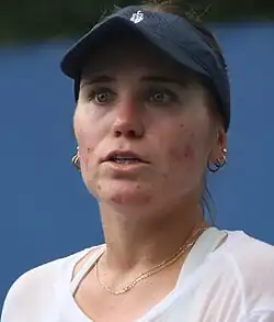 Kenin built on that success in 2015 by winning the USTA International Spring Championships, a Grade-1 tournament.[16] During the summer, she won the USTA Girls 18s National Championship as the No. 3 seed, defeating top-seeded Black in the final. With the title, she earned a wild card into the main draw of the 2015 US Open.[17] Kenin also participated in the junior event at the US Open and finished runner-up to Dalma Gálfi, her best performance at a junior Grand Slam event.[18] This result helped her rise to No. 2 in the world by the end of the year.[12] Kenin continued to play on the junior tour in 2016 while primarily playing in professional events on the ITF Women's Circuit. At the US Open, she again produced one of her best results of the year, losing in the semifinals to Viktória Kužmová, after upsetting the top seed Anastasia Potapova in the previous round.[19][20]