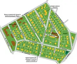 In the late 1980s, commercial activity began to develop in the country. At the same time, the authorities allocated little money for the maintenance of the village. Then the residents organized a structure to earn money for the maintenance of the village - the Sokol agency. The agency brought in profits from work performed on a contractual basis. Its income many times exceeded the amount of funds allocated by the district executive committee.[25] In order for residents to be able to more effectively resolve territorial issues, on July 14, 1989, a territorial public self-government was established in the village.[26][27]
