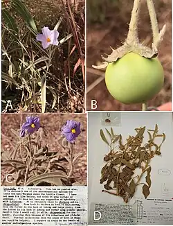 - McDonnell, Angela J.; Wetreich, Heather B.; Cantley, Jason T.; Jobson, Peter; Martine, Christopher T. (18 June 2019). "Solanum plastisexum, an enigmatic new bush tomato from the Australian Monsoon Tropics exhibiting breeding system fluidity". PhytoKeys (124): 39–55. doi:10.3897/phytokeys.124.33526. PMC 6592974. PMID 31258372. The present article incorporates text and images from this source, which is available under the Creative Commons Attribution License (CC BY 4.0).