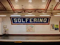 Solférino ([sɔlfeʁino] ) is a station on Line 12 of the Paris Métro in the 7th arrondissement. Located under Boulevard Saint-Germain, it is named after the nearby Rue de Solférino, which in turn was named after the Battle of Solferino, fought in 1859 during the Second Italian War of Independence, where the Franco-Piedmontese troops commanded by Napoleon III defeated the Austrians. The street also gave its name to Passerelle Solférino to the north, a footbridge over the Seine, now known as Passerelle Léopold-Sédar-Senghor.