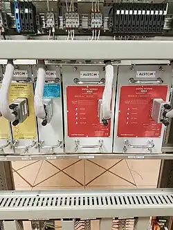 There are two kinds of TFM; the signal module (identified by a red label) and the points module (black label). A maximum of 63 TFMs may be addressed by one SSI interlocking; in practice the number will be limited by timing issues and the need to allow for future expansion.