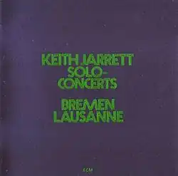 Solo Concerts: Bremen/Lausanne is a live solo triple album by jazz pianist Keith Jarrett recorded at the Salle de Spectacles d'Epalinges near Lausanne, Switzerland and the Kleiner Sendesall in Bremen, Germany on March 20 and July 12, 1973, respectively and released on ECM November that same year—Jarrett's debut solo live album for the label.[2]