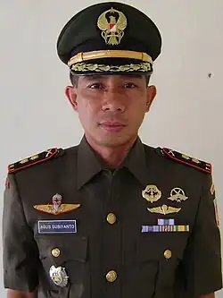 - Widi Prasetijono: Like Agus, Widi was also a member of Kopassus, and the military district commander during the last two years of Joko Widodo's mayoral term (2011–2012). After Joko Widodo became president, he appointed Widi as his aide-de-camp, serving until 2016. He then commanded the Surakarta (Warastrama) Military Area, Central Java (Diponegoro) Military Region, and the commanding-general of Kopassus.[5] By December 2023, he had already become commander of the Army Doctrine, Education and Training Leadership Command and the only lieutenant general in his class of 1993.[17]