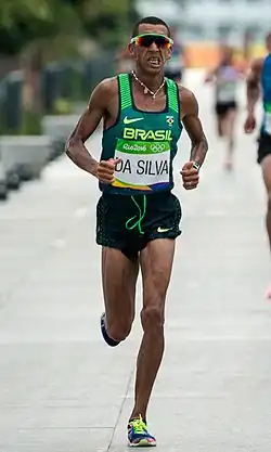 The following year he entered a 10,000 metres track race in Rio de Janeiro and won in a time of 29:39.72 minutes. At the São Paulo Half Marathon Corpore in April 2010 he came third,[2] then he stepped up in distance to make his debut in the full marathon a month later. He surprised the field at the Porto Alegre Marathon by winning on his first attempt in a time of 2:15:45 hours.[1][3] Under the guidance of two-time Olympian Clodoaldo do Carmo,[4] da Silva represented Esporte Clube Pinheiros in the 10,000 m at the Troféu Brasil de Atletismo (the Brazilian championships) and came fourth at his first national level event.[2]