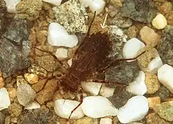 The larva is dark reddish-brown or orange-brown on top, and paler below, and also has a dense coat of setae.[8] Some sources indicate that the larva has long lateral spines on the 8th and 9th abdominal segments, but it is not clear if this is consistent across the species' range.[8]
