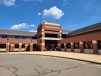 Somers High School is a public high school in the town of Somers, Connecticut, United States. It offers advanced placement courses in collaboration with the University of Connecticut. It participates in the Somers-based Four Town Fair with student-run booths and a senior parade float. Available sports include soccer, lacrosse, field hockey, track and field, baseball, softball, basketball, golf, and wrestling.