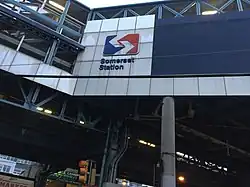 Between 1988 and 2003, SEPTA undertook a $493.3 million reconstruction of the 5.5-mile (8.9 km) Frankford Elevated.[5] Somerset station was completely rebuilt on the site of the original station; the project included new platforms, elevators, windscreens, and overpasses, and the station now meets ADA accessibility requirements.[5] The line had originally been built with track ballast and was replaced with precast sections of deck, allowing the station (and the entire line) to remain open throughout the project.[6]