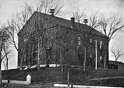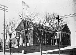 It was decided to build the building in 1851.[3] Melvin & Young of Boston were the architects, and James S. Tuttle and Isaiah W. Tuttle of Somerville were the builders.[4] When it was completed in 1852, the brick Greek Revival building housed the Free High School on the second floor, and a large meeting hall, called Town Hall, on the first. Rapid expansion of the town during the next fifteen years created cramped conditions for the High School, and in 1866 it was voted that the school would take over the entire building. Almost simultaneously, the Forster School on Sycamore Street was destroyed by fire. It was decided that the new Forster School would include a large hall, called Forster Hall, on its third floor to replace Town Hall. This was completed in 1867, and the High School moved into the vacant space. This too was quickly outgrown, and a new Somerville High School was built in 1871, and dedicated in 1872. Also in 1871, the Massachusetts legislature reincorporated Somerville as a city, which was approved by the voters, which was to take effect on January 1, 1872. Once the new High School was dedicated, the old building was converted into the Somerville City Hall. Continued growth of the city necessitated more changes in the building, with the police department and public library moving into their own buildings in 1875 and 1885, respectively.[3]