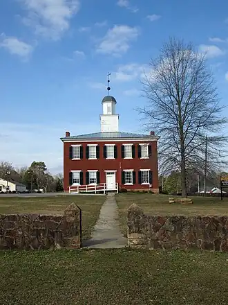 Constructed in 1837, this building is oldest extant courthouse in Alabama and served as the second courthouse for Morgan County.[2] The construction was funded by a tax levied by the state government. It was used by the county government until 1891, when the county seat was moved to the larger Decatur. The building was later used as a school and town hall.[3]