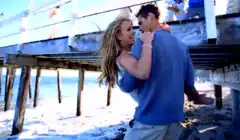 According to MTV, the initial concept for the music video was to portray Spears on the porch of a beachfront home watching a group of kids having fun, prompting flashbacks about her former boyfriend.[36] However, the video begins with Spears, in a long sleeveless white dress, walking barefoot through a lawn to a telescope, and looking through it. The concept was later changed to a man and a dog walking on the beach, portraying the singer as the girl next door, watching her love interest, played by model Chad Cole, from afar.[40] The beach location was kept,[40] and the music video intercuts with scenes of Spears' dancing on the Paradise Cove pier with her dancers dressed all in beach-friendly white attire, then Spears sits near a car.[40] A writer of Rolling Stone noted the video is best known for "purifying the sexy persona Spears introduced in the '... Baby One More Time' video",[41] while describing it as "a virginal Britney in a long, flowing white dress (and other demure outfits) gazing at a clean-cut boy on the beach, then she walks on the balcony with a pink ball and does some chaste choreography that features her dancers forming a heart while she sings that she only wants to "hold you tight, treat you right." Spears is sitting on a picnic blanket wishing she was there with him. She leaves alone."[41] On February 20, 2012, behind the scenes footage of the music video leaked online.[42]