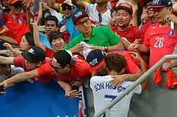 Outside of football, Son is viewed as a symbol of national pride in South Korea for his achievements, and has been listed in Forbes Korea Power Celebrity 40 since 2019, where he ranked second in 2024.[18][19][20] In June 2022, Son received the Cheongnyong Medal, the highest order of merit for achievement in sports given to a South Korean citizen, for his achievements in football.[21] Son has been credited for having raised the profile of Spurs among South Koreans, with the club's marketing and social media strategy catering extensively to Korean supporters.[22]