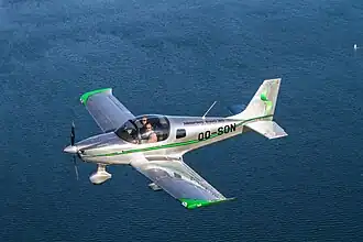 In late 2015, the Sonaca group announced the creation of the subsidiary “Sonaca Aircraft” dedicated to the development, certification and market launch of a new training aircraft based on TAF's Sling 2. Later the aircraft was renamed as Sonaca 200. The single-engine two-seater, specifically designed for pilots' training and leisure flights, was certified in June 2018.[2] Sonaca 200 is EASA-certified for a maximum take-off weight of 750 kg and a cruise speed of 115 knots. In addition to the obtention of the type certification, Sonaca Aircraft has obtained a Design Organisation Approval (DOA) and Production Organisations Approvals (POA) certification.[2]